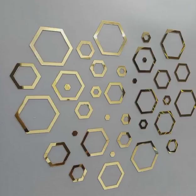 Transform your walls with these stunning Golden Acrylic Hexa Ring Wall Mirrors.