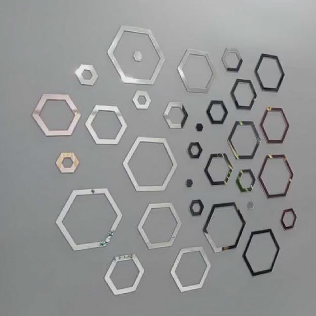 Set of hexagon ring-shaped mirrors in multiple sizes for custom arrangements